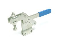 | Sua característica principal é a altura reduzida. Cabo e haste de travamento são diferentes do cabo do grampo vertical. Esse Presilhas movem-se na direção oposta aos movimentos do cabo. São fabricados com barra sólida ou dobrada em forma de "U" e com vários tipos de montagem. |